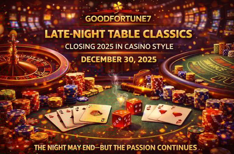 As the year comes to an exciting close, GOODFORTUNE7 sets the mood with a refined year-end focus on late-night table gaming experiences. December 30, 2025 marks a moment to look back on the elegance, thrill, and steady excitement that table games brought throughout the year.